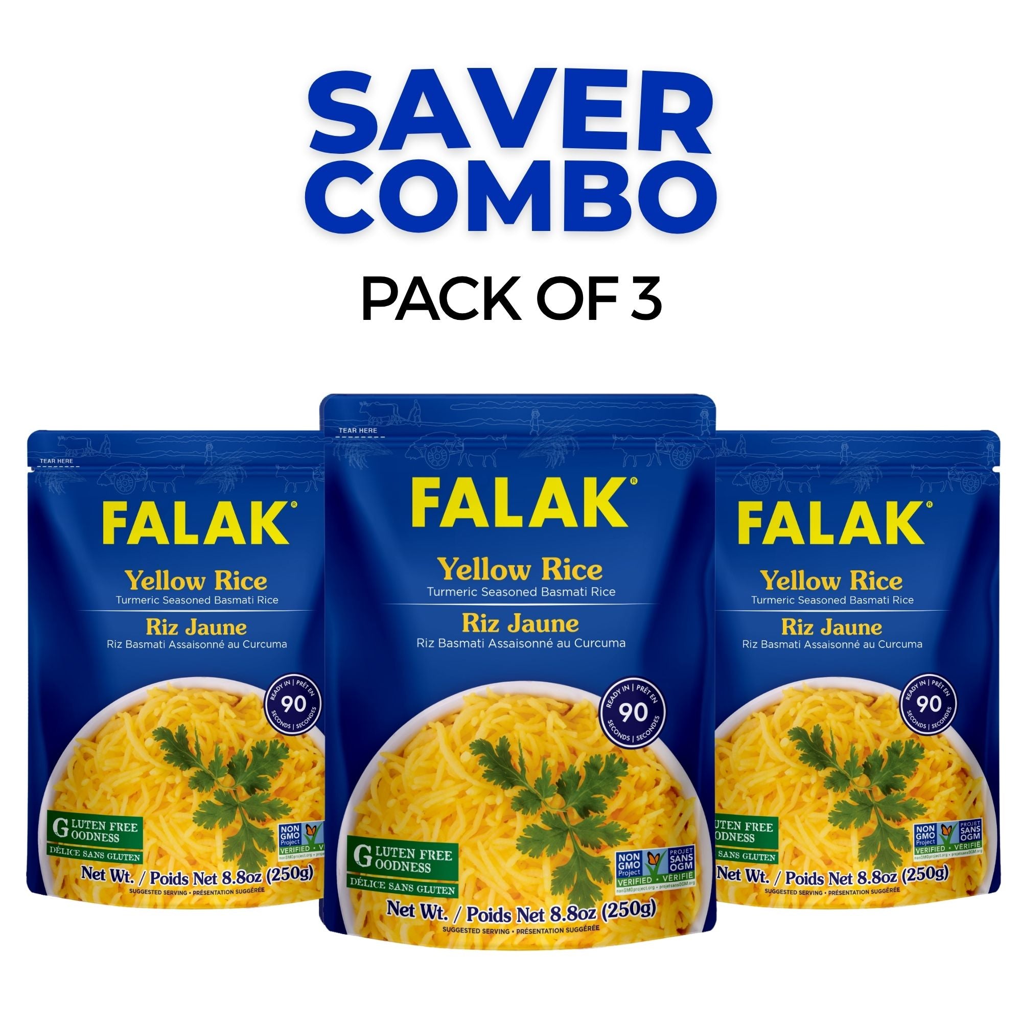 FALAK Ready to Eat Yellow Rice (Turmeric Seasoned Basmati Rice, Microwaveable, Ready in 90 Seconds)
